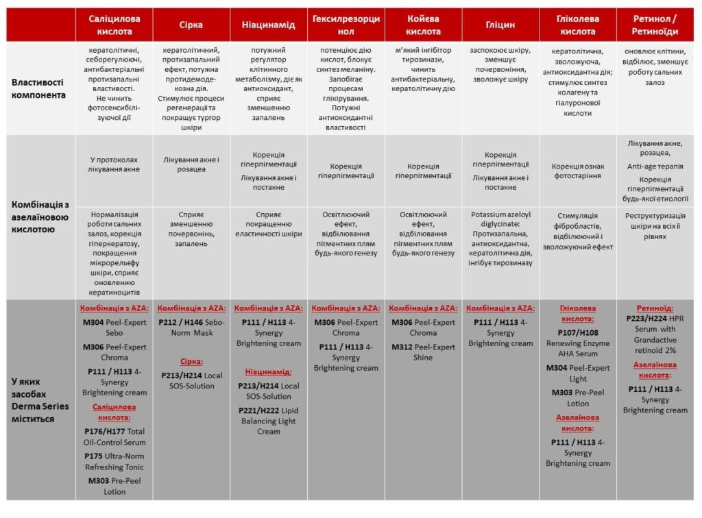 Поєднання азелаїнової кислоти з іншими активними компонентами