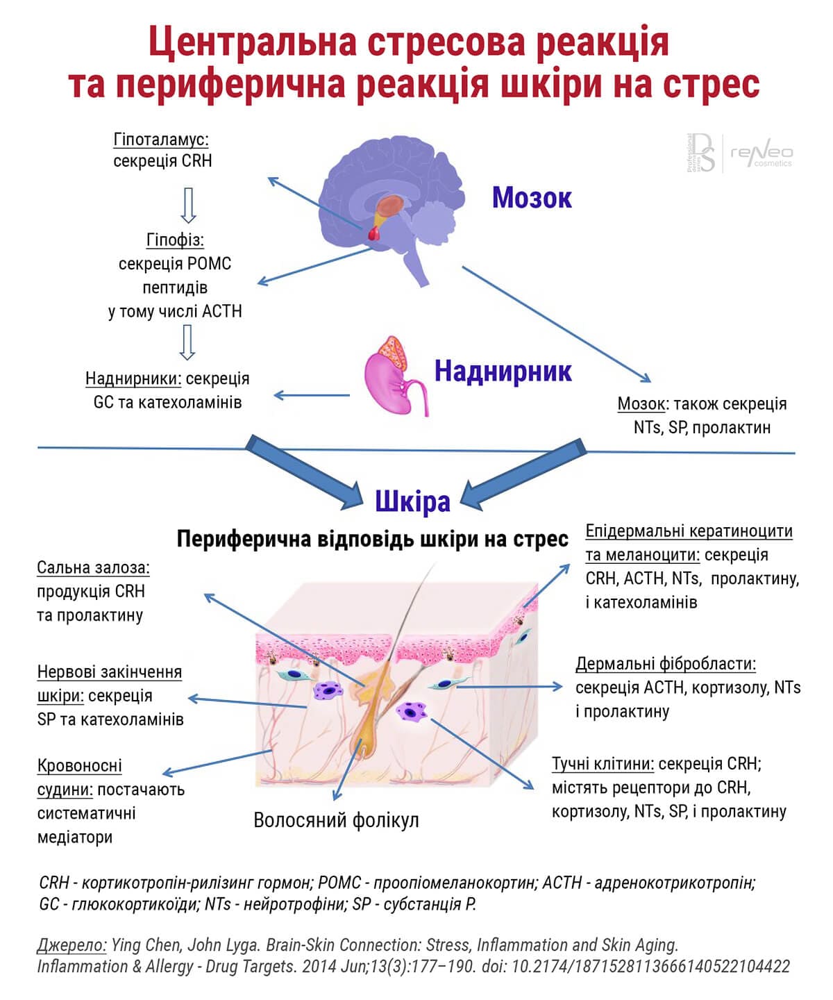 7. Chen Y., Lyga J. Brain-Skin Connection: Stress, Inflammation and Skin Aging. Inflammation & Allergy – Drug Targets. 2014 Jun;13(3):177–190. doi: 10.2174/1871528113666140522104422 . PMCID: PMC4082169 PMID: 24853682