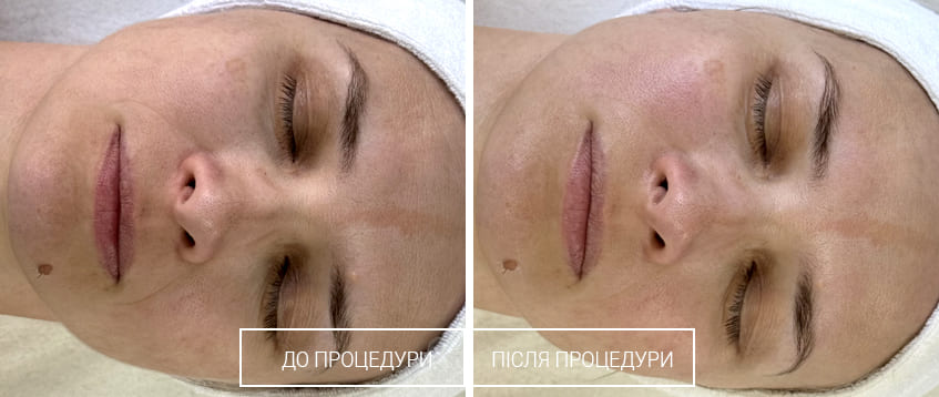 Освітлюючий регенеруючий догляд забезпечує зміцнення шкірного бар’єру, відновлює баланс жирних кислот, захищаючи шкіру від навколишнього середовища. Процедура спрямована на вирівнювання тону шкіри, роботу з наявною пігментацією, контроль меланогенезу та запобігання появі нових пігментних плям.